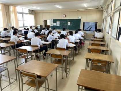 中間テストについての説明を受けています。