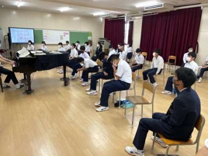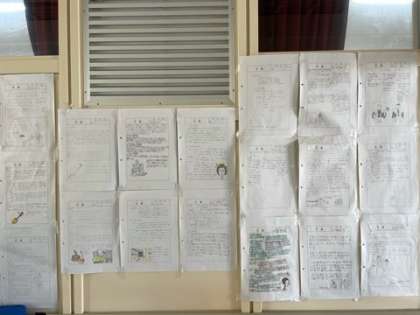 廊下の壁には、各自が調べた音楽家たちの紹介が貼られています。