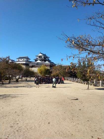 松山城を背景に記念撮影