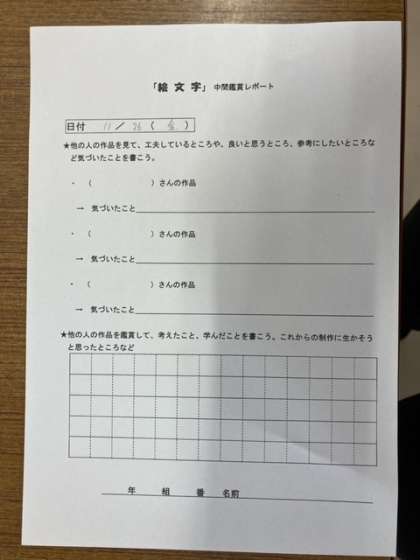 制作途中の絵文字を見て、いいなと思った作品にレポートを書いていました。