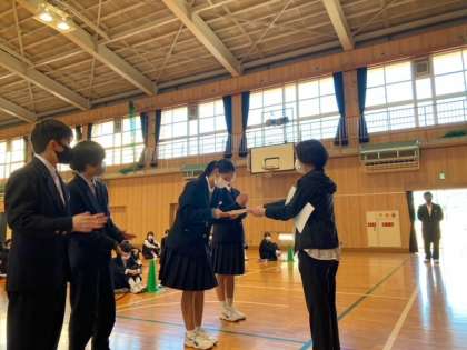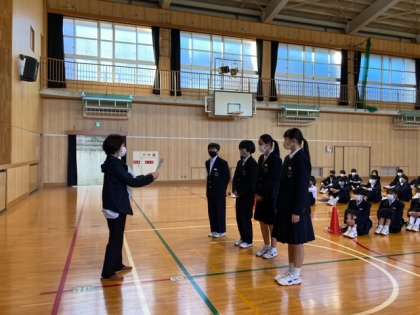 今日は学年集会で、2年生フォトコンテストの表彰がありました。