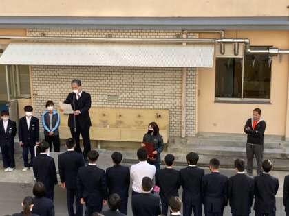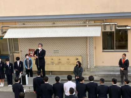 今日は、全校集会で野球部ブロック大会準優勝の表彰がありました。