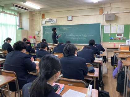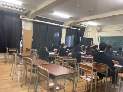 2つに分かれて分割授業をしています。