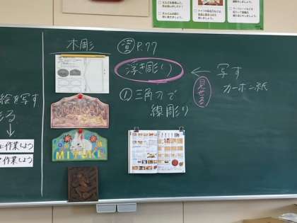 彫刻刀を使って彫っています。