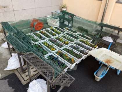 卒業式の花道をつくるために育てていたお花が、カラスに荒らされることが増えました。
