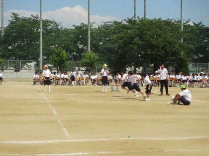 6月3日(水)の体育大会に向けて、本日、1日(月)は午前中4時間の授業の後、昼食後、予行を行いました。とても暑く生徒たちもばて気味でしたが、係生徒をはじめ、生徒全員何とか最後まで練習に励んでいました。