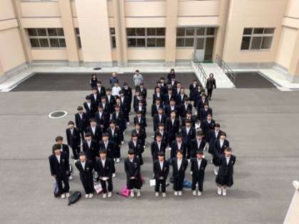 学年集会後、一年生は全体写真を撮影しました!