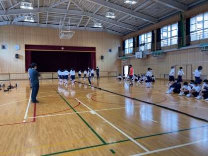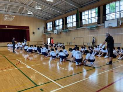 体育大会の学年種目の練習をしています。