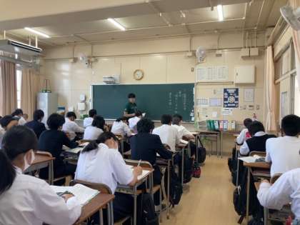 「山寺のびわの実」について教育実習生が授業をしています。