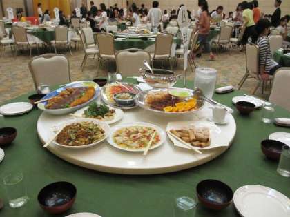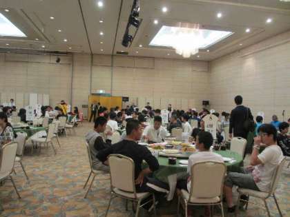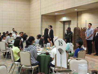 写真は代表生徒のあいさつ、夕食と食事風景です。