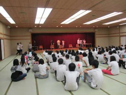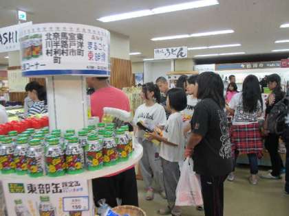宿舎内で土産物を買う生徒たちとレクレーションのようすです。