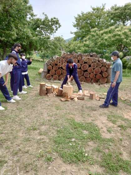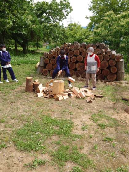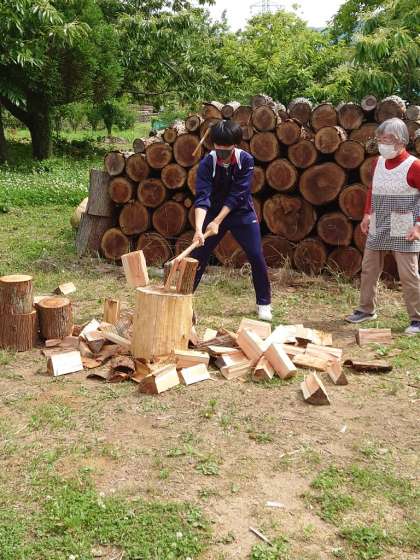 薪割りをしています。