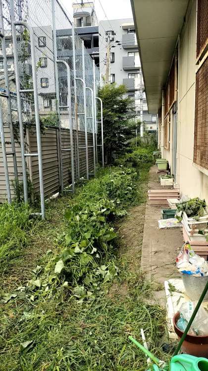 陸上部の生徒がさつまいも畑の草むしりをしてくれました。