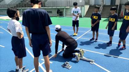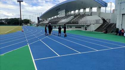陸上部は代休を利用して吹田市立陸上競技場で競技場練習を行いました。