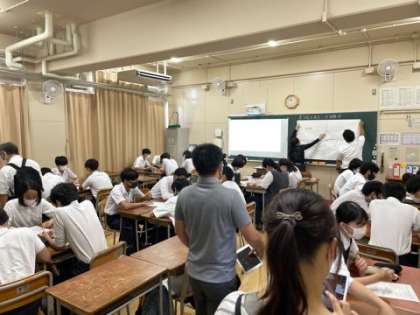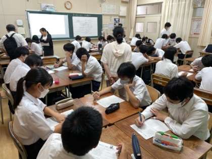 淀川中学校の数学の授業を撮影し、研究会において大阪市の数学の先生方で討議します。