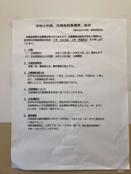 本日〜20日(火)まで、生徒会役員の立候補を受け付けます。