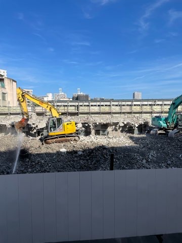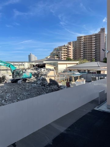 東側の解体が進み,向こう側にあるプレハブ校舎が見えてきました。