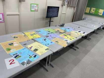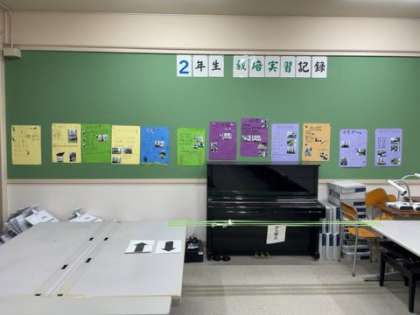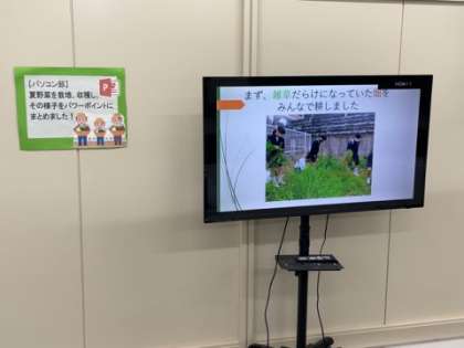 PC室では、技術科でおこなった「サツマイモの栽培記録」や、パソコン部による「6種類の夏野菜の栽培記録」が展示されています。