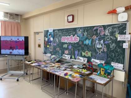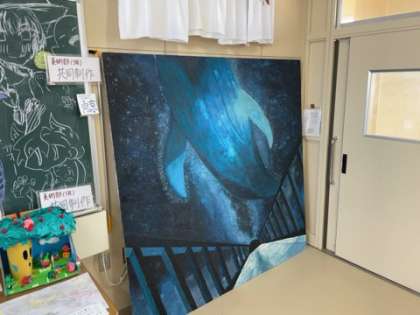 美術部による展示品です。S100号を超える大作から、あのキャラクターの立体作品、個人制作まで様々な作品を展示しています。
