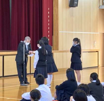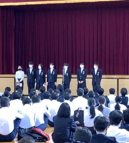そして後期の生徒会役員と学級委員の認証式を行いました。