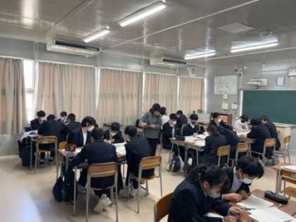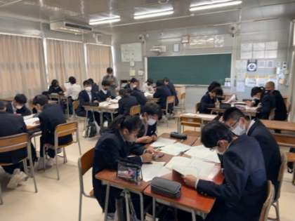 グループに分かれて、チャレンジテスト(過去問)の振り返りをおこなっています。