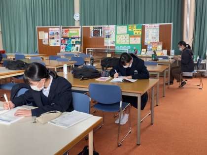 3年生は放課後の図書館開放を利用して、面接の練習を自分たちで行っていました。