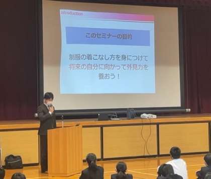 本日6時間目に菅公学生服様より外部講師をお招きして、「制服着こなしセミナー」を開催しました。