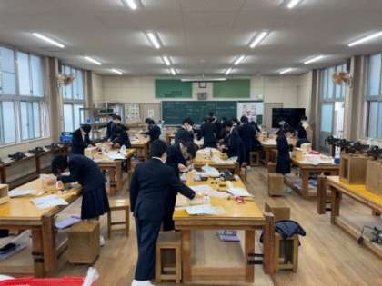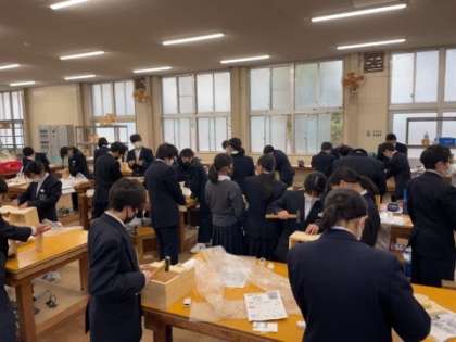 げんのうや紙やすりを使いながら、組み立て作業を進めています。