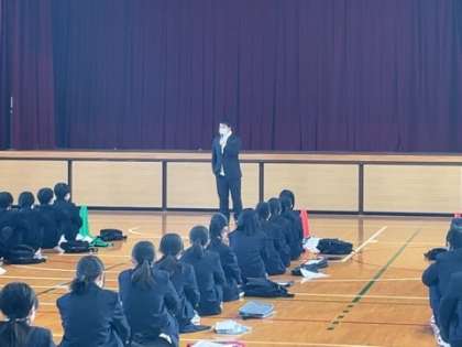 今日は中越先生から合唱についてお話がありました。合唱の完成度や質は、これまでの1・2学期をどう過ごしてきたかによって変わるものです。また、お互いを信頼していないと良い合唱はできません。3年間の集大成として、みなさんの「つながり」を見せてほしいと思います。