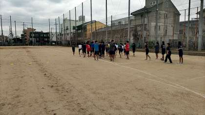 陸上部は東大阪市立弥刀中学校に合同練習に行きました。