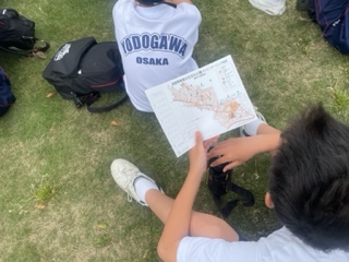 施設の方から地図の見方やコンパスの使い方を教えてもらいスタートです。