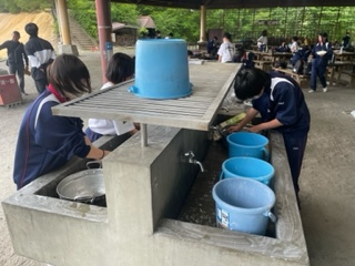 真っ黒になったお鍋の底を一生懸命磨いています。