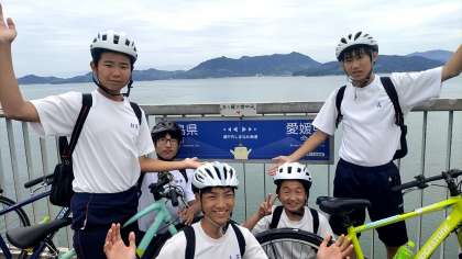 しまなみ海道で自転車、いちご狩り、釣りの3つに分かれて選択体験を行いました。
