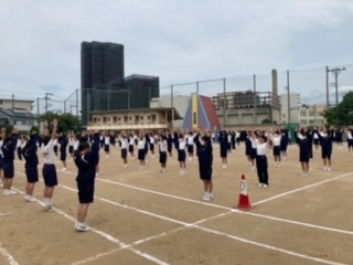 入場行進の後はラジオ体操です。