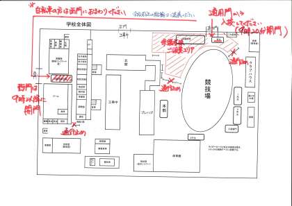 ・学校周辺の駐輪はご遠慮ください。(自転車は西門から入ったところに駐輪スペースを設けます。)
