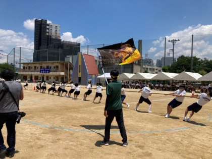 2年学年競技(綱引き)、バラエティー走、3年学年競技(全員リレー)で午前の部が終了します
