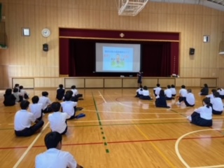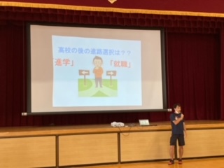 進路指導主事 山本先生がスライドを用いて、分かりやすく説明していました。