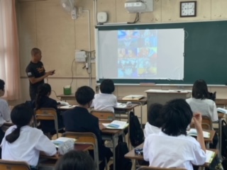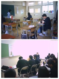 写真は順に1年1組、1年2組、1年3組の様子です。