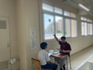 5時間目は3年2組の英語の授業でC-NETのジョエル先生のスピーキングテストをしています。