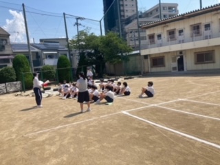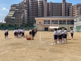 項目にあるハンドボール投げと50m走の測定をやっていました。