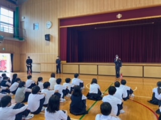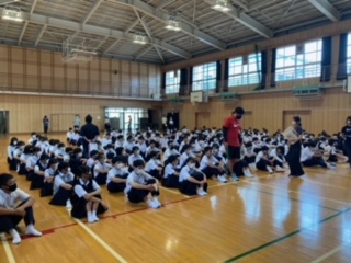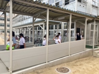 本来は運動場に避難するのですが、暑さ指数が「危険」とのことでしたので、急遽体育館を避難場所にしました
