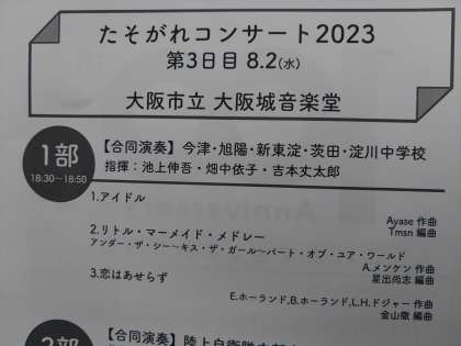 先日は大東文化センターでコンクールに出場、本日は森ノ宮野外音楽堂でのコンサートと吹奏楽部は猛暑の中頑張って活動しています。