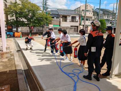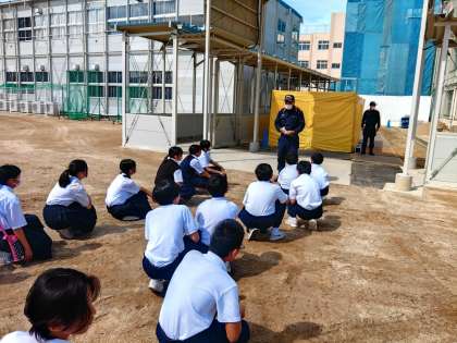 学年別学習で1年生は都島消防署の皆さんの指導を受けました。