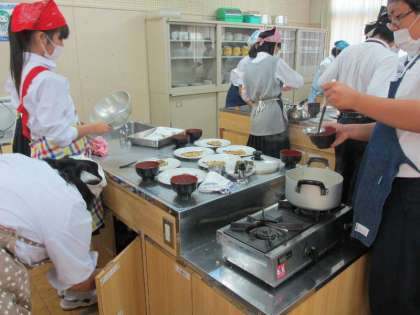 写真は調理実習の様子です。後片付けもしっかりお願いします。
