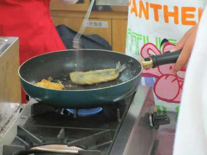 イワシを使い、揚げないイワシフライ、つみれ汁を作っていました。