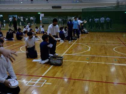 最後の種目はフライングディスクです。初めての体験でしたが何度も練習するうちに成功率が上がりました。