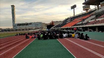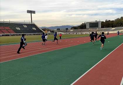 陸上部は9日、万博陸上競技場で行われたクレーマージャパンの陸上教室に参加しました。それぞれのパートに分かれ、プロの方に指導していただきました。