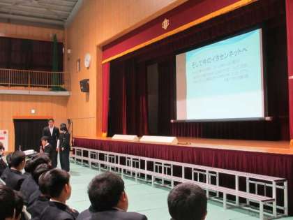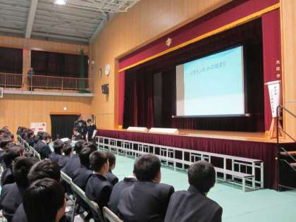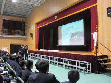 まずは体育館での発表の部です。今回は科学部の発表です。淀川にも生息し、今では絶滅危惧種とされるイタセンパラについての発表でした。