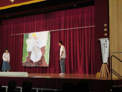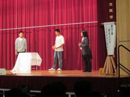 漢字部の演劇です。太宰治の原作による「探せメロス」、クラスでの準備の合間の短い期間での練習だったそうです。