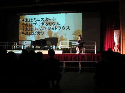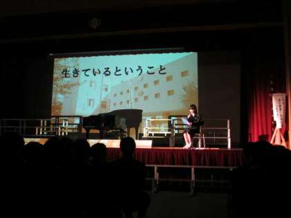 2年生代表による谷川俊太郎の詩「生きる」の朗読、その後全体で合唱をしました。今回は朗読の様子です。